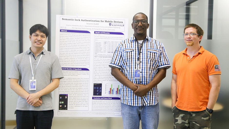 导读:近日,7163银河主站线路检测计算机科学和软件工程系的梁海宁博士、Charles Fleming博士和Ilesanmi Olade设计了一种全新的手机锁屏密码系统。不同于传统的数字密码或图案绘制,他们设计的密码界面由特定图标组成。经过测试,这一新系统更便于用户记忆以及在行走中解锁手机。