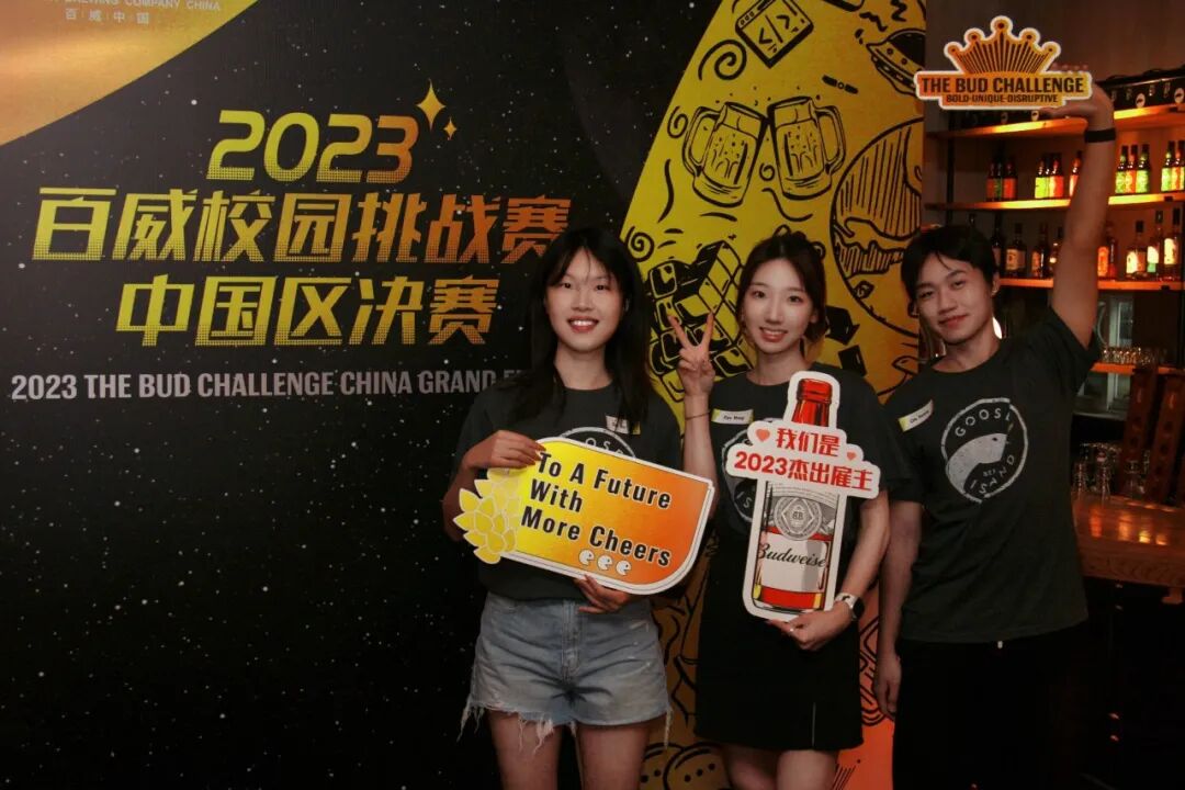 图为王子燏(左二)参加2023百威校园挑战赛中国区决赛的照片