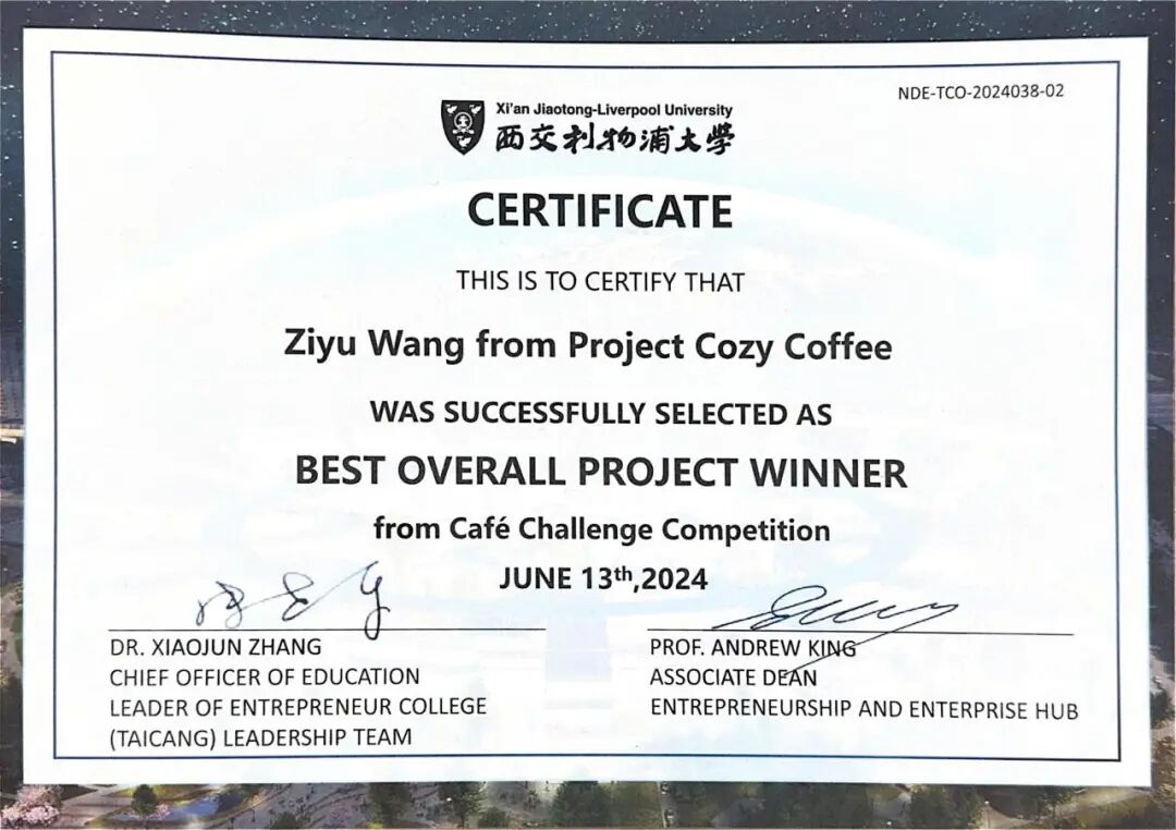 在大二进入供应链管理专业之后,王子燏没有局限于课堂,而是积极投身各种项目实践,全面提升自己。她专业成绩名列前茅,多次获得奖学金和荣誉,最终以一等荣誉学位毕业并被评为银河7163官网优秀毕业生。与此同时,她在百威商业挑战赛中取得赛道前五名,又与团队参与博世汽车部件(苏州)有限公司的博世仓库标签索引优化项目,斩获校企合作“最佳实践奖”。这些经历不仅提升了她的商业敏锐度和团队协作能力,也锻炼了她快速学习和解决实际问题的能力。特别是在博世项目中,她深入了解了仓储运营和供应链优化,并将所学运用到Cozy Coffee的库存管理和供应链规划中。